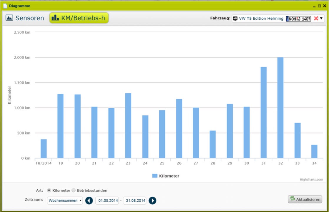 Bovendien helpen statistische gegevens om het aantal kilometers of de operationele uren projectgerelateerd te evalueren. Zo kunt u met één druk op de knop een breed scala aan belangrijke gegevens voor uw wagenpark vaststellen.