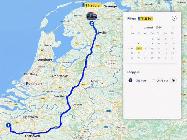 Met voertuigtracking ziet u direct waar uw personenauto’s, bestelwagens en vrachtwagens zich bevinden – zonder eindeloos bellen. U ziet live de locatie van elk voertuig en kunt later elke rit, elke stop en elke stilstand in de historie bekijken. Deze transparantie maakt het mogelijk voertuigen efficiënter in te zetten: u ziet in één oogopslag welk voertuig beschikbaar is en waar het zich bevindt.